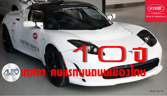 วันที่ 17 -31 ส.ค. 2555 หรือ เมื่อ10ปีที่แล้ว อีตั้น อิมพอร์ตผู้นำเข้าอิสระรายใหญ่จองตลาดไทย ได้นำเข้ารถยนต์เทสลา รถไฟฟ้าคันแรกของตลาด และ จัดแสดงยนตรกรรมไฟฟ้าคันนี้ในงาน มหกรรมวิทยาศาสตร์และเทคโนโลยีแห่งชาติประจำปี 2555 ณ ไบเทค บางนา ถือเป็นครั้งแรกที่ผู้คนเมืองไทยได้เห็นรถแบรนด์เทสลาตัวเป็นๆ และได้สร้างความน่าสนใจให้แก่ตลาดและวงวิชาการอย่างมาก