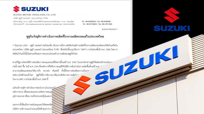เขย่าวงการอุตสาหกรรมยานยนต์ไทยครั้งใหญ่ โรงงานซูซูกิ ไม่ไปต่อยุติการผลิตปลายปี 68 หันนำเข้ารถจากญี่ปุ่นและอินเดีย