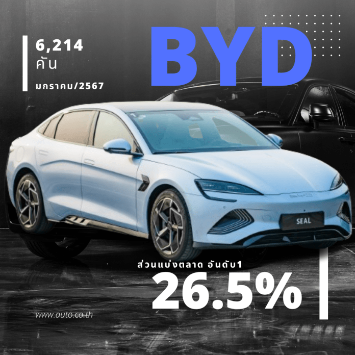 พลิกโต๊ะเก๋งไทยBYD ม.ค.67ขึ้นเบอร์1 แซงโตโยต้า ฮอนด้า