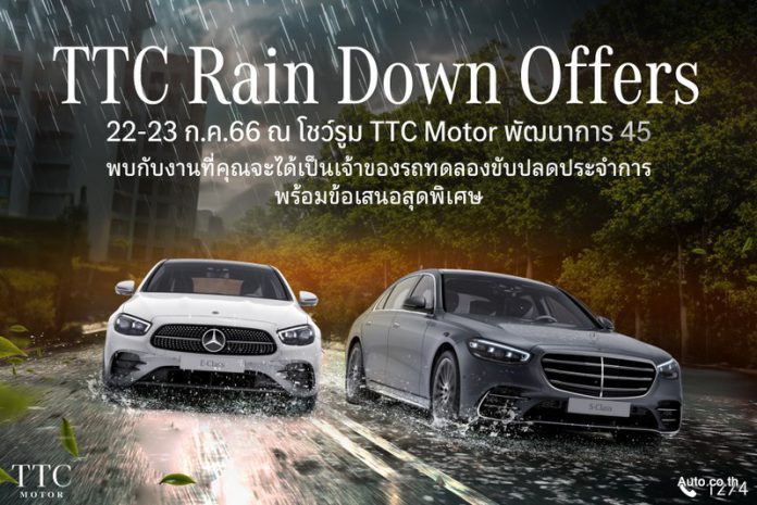 TTC Motor จัดหนัก จัดเต็มกับความพิเศษกลางปี ด้วยโปรโมชั่นและอีเว้นต์หลากหลาย TTC Rain Down Offers ยกขบวนรถใหม่ป้ายแดง และรถผู้บริหารไมล์น้อย รถเดโม่ จาก Mercedes-Benz และ Mercedes-AMG ราคาต่ำกว่า 2 ล้าน พร้อมรับข้อเสนอฉ่ำว้าว ที่คุณไม่อาจปฏิเสธได้ ทั้งยังจะได้เพลิดเพลินกับอีเว้นต์สนุกสนาน สอดแทรกสาระ มอบให้กับทุกท่านที่มาชมหรือเลือกซื้อ ในวันที่ 22-23 กรกฎาคมนี้ ที่พัฒนาการ 45