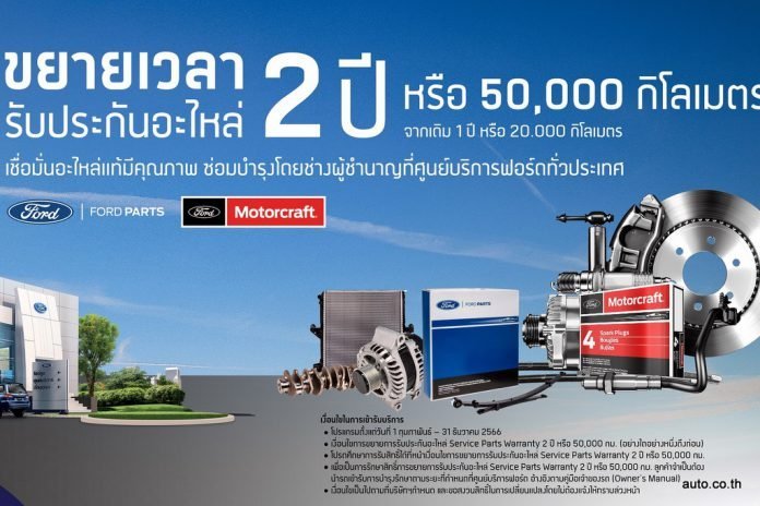 ฟอร์ดเดินหน้าเน้นย้ำการยกระดับประสบการณ์การเป็นเจ้าของรถยนต์ฟอร์ด พร้อมเสริมความมั่นใจให้แก่ลูกค้าผ่านโปรแกรมการขยายการรับประกันอะไหล่ที่ยาวนานขึ้นจากเดิม 1 ปี หรือ 20,000 กิโลเมตร เป็น 2 ปี หรือ 50,000 กิโลเมตร แล้วแต่ระยะใดถึงก่อน เมื่อลูกค้านำรถยนต์ฟอร์ดเข้ารับบริการเปลี่ยนอะไหล่แท้ฟอร์ด หรือฟอร์ดมอเตอร์คราฟท์ ซึ่งครอบคลุม 5 กลุ่มอะไหล่หลัก ประกอบด้วย 1. เครื่องยนต์และระบบส่งกำลัง 2. ชิ้นส่วนเครื่องยนต์และส่วนประกอบ 3. อุปกรณ์ชิ้นส่วนอิเล็กทรอนิกส์ 4. กลุ่มอะไหล่บำรุงรักษา และการสึกหรอตามสภาพการใช้งาน ได้แก่ ผ้าเบรคและก้ามเบรค จานดิสเบรค และโช้คอัพ และ 5. แบตเตอรี่ เฉพาะรุ่น AGM โดยแบตเตอรี่ FoMoCo ประเภท AGM หมายเลขอะไหล่ EB3Z 10655 A จะขยายระยะรับประกันเป็น 2 ปี หรือ 40,000 กิโลเมตร แล้วแต่ระยะใดจะถึงก่อน