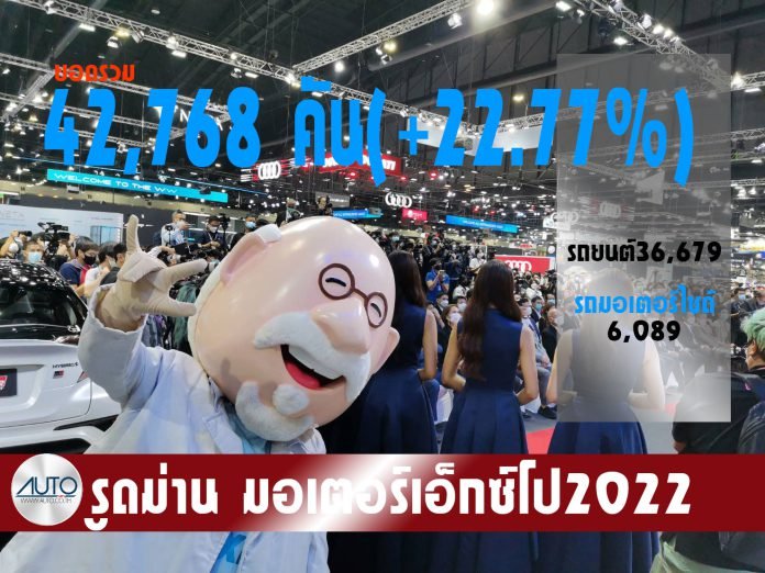 “MOTOR EXPO 2022”หรืองานมหกรรมยานยนต์โดยสื่อสากล ปิดฉากปี2565 ด้วยยอดรถขายพุ่งกว่า 3หมื่นคัน รถเอนกประสงค์( SUV) และรถยนต์ไฟฟ้า( EV) คึกคัก จักรยานยนต์ขายเกิน 6 พันคัน ผู้ชมทะลุ 1 ล้าน อัดฉีดเม็ดเงินกระตุ้นเศรษฐกิจมากกว่า 5 หมื่นล้าน