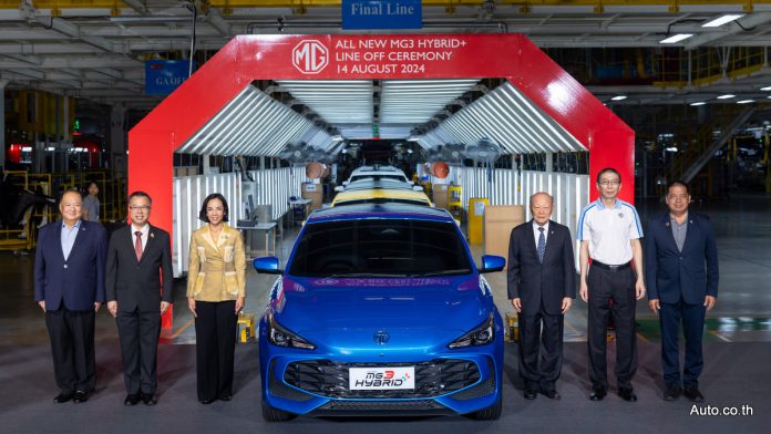 15 สิงหาคม 2567 – รายงานข่าวจาก บริษัท เอสเอไอซี มอเตอร์ – ซีพี จำกัด และ บริษัท เอ็มจี เซลส์ (ประเทศไทย) จำกัด ผู้ผลิตและผู้จำหน่ายรถยนต์เอ็มจี เปิดเผยว่า บริษัทได้เริ่มปล่อยรถคันแรกจากสายการผลิตโดย ได้รับเกียรติจาก นางสาวพิมพ์ภัทรา วิชัยกุล รักษาการรัฐมนตรีกระทรวงอุตสาหกรรม นายณัฐกร อุเทนสุต ที่ปรึกษาด้านการพัฒนาระบบการควบคุมทางสรรพสามิต และ นายนฤตม์ เทอดสถีรศักดิ์ เลขาธิการคณะกรรมการส่งเสริมการลงทุน (บีโอไอ) พร้อมคณะและหน่วยงานที่เกี่ยวข้อง ร่วมเปิดไลน์การผลิตรถไฮบริดรุ่น NEW MG3 HYBRID+ ใหม่ก่อนเปิดตัวและประกาศราคาอย่างเป็นทางการในไทย วันที่ 20 สิงหาคม 2567 นี้